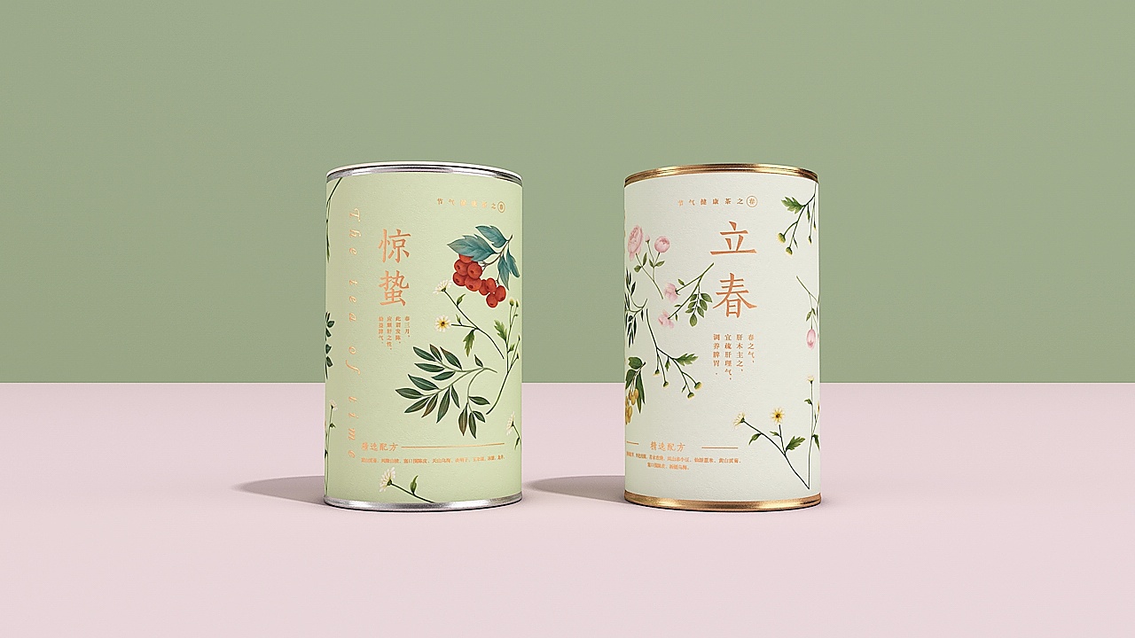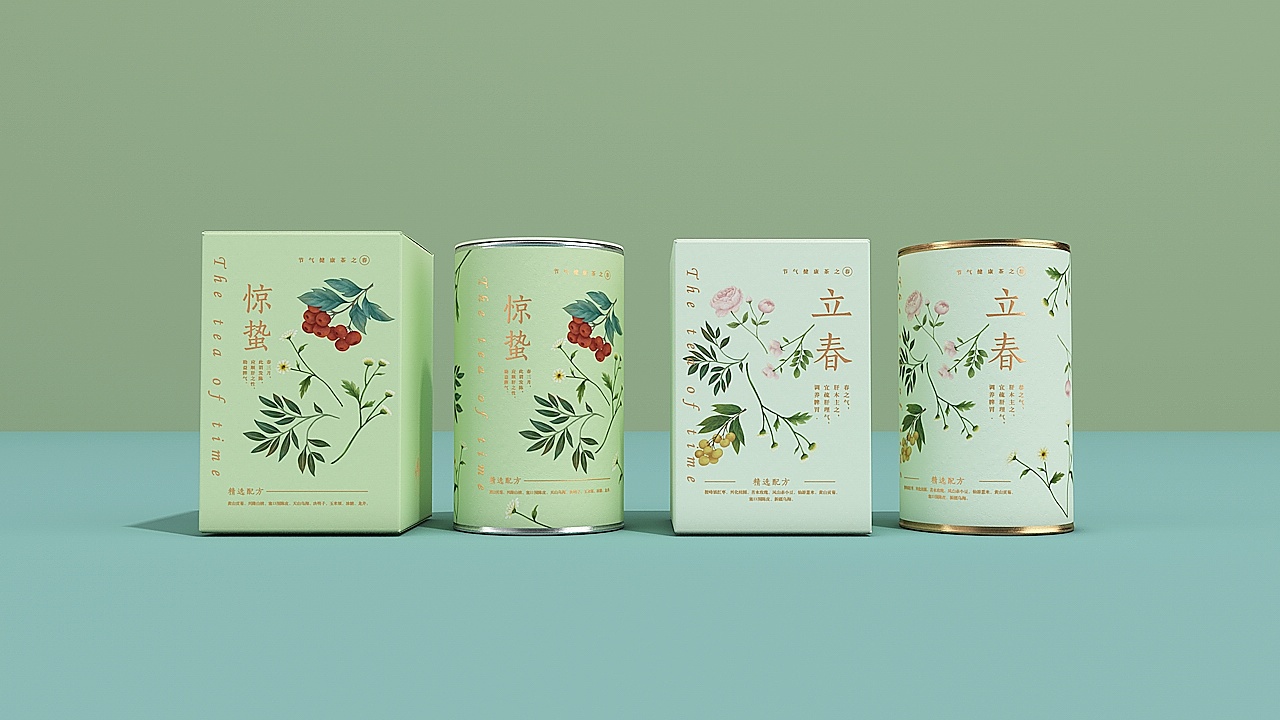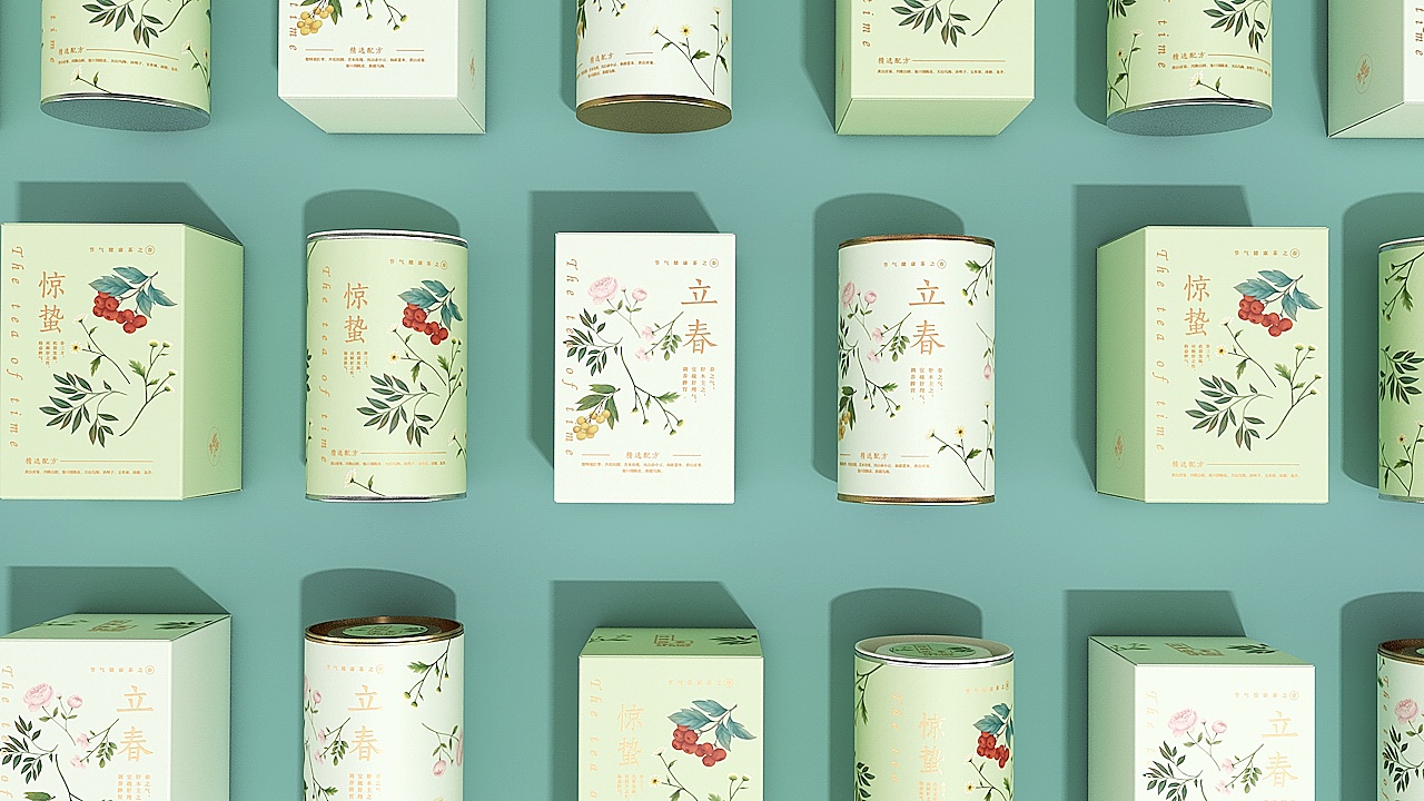 阅尽千帆,过万重山,雨雪风霜,暖一杯茶,此为节气健康茶之春系列,在春季的进行身体调理,以立春、惊蛰等节气,山楂、桂圆、玫瑰等为设计元素,运用嫩绿、芽黄、淡粉等清淡优雅的色